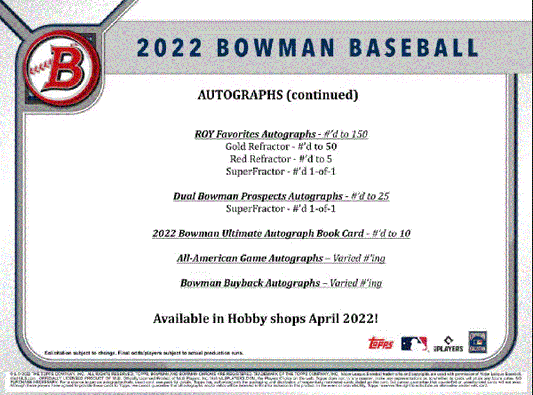 Sold out2022 Bowman Baseball Jumbo HTA (Box)