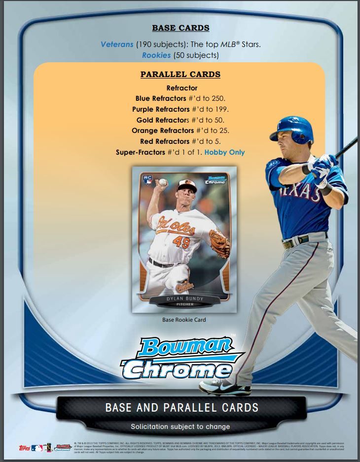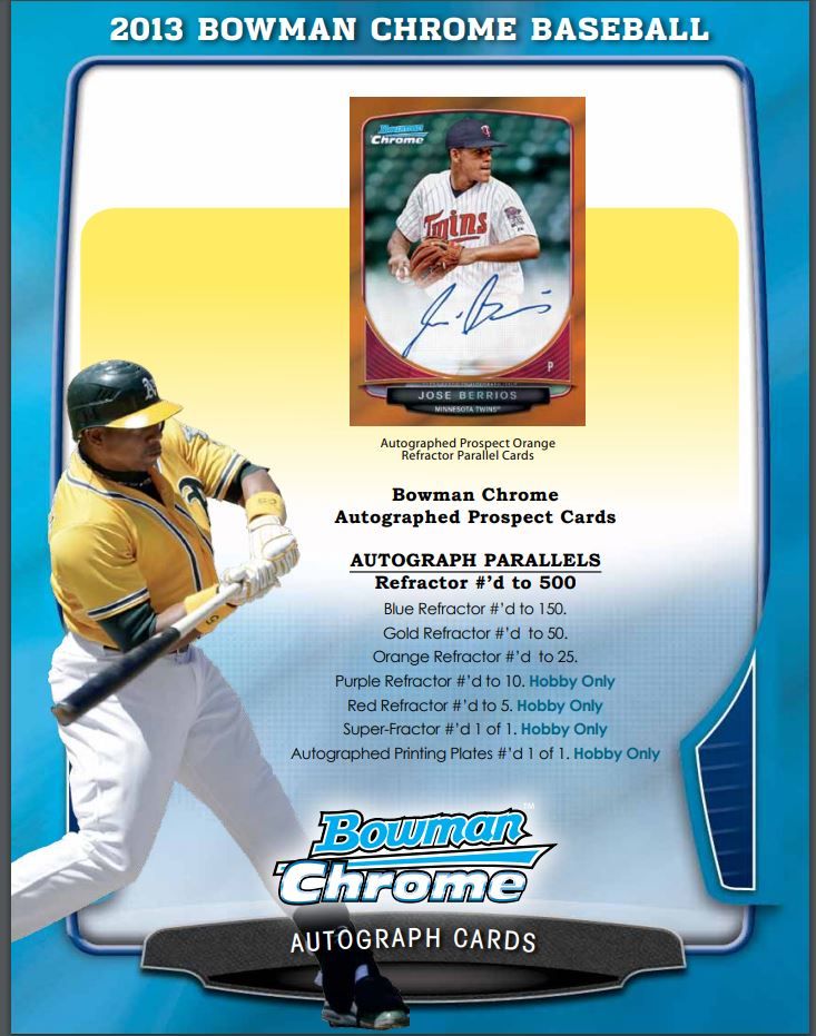 65th Anniversary Refractor- "Best Bowman Players of All-Time." This insert is a continuity program in all 2013 Bowman products, featuring the top players ever featured in Bowman.