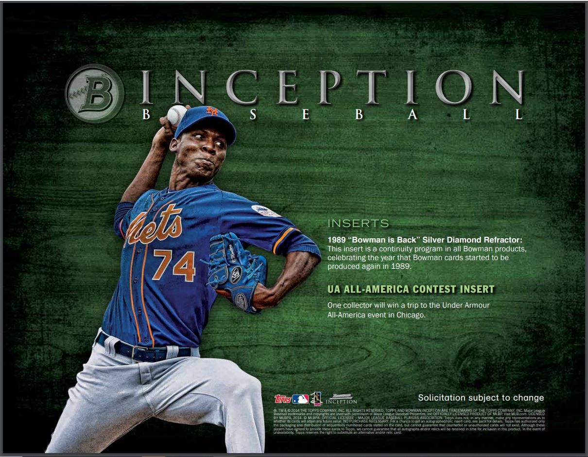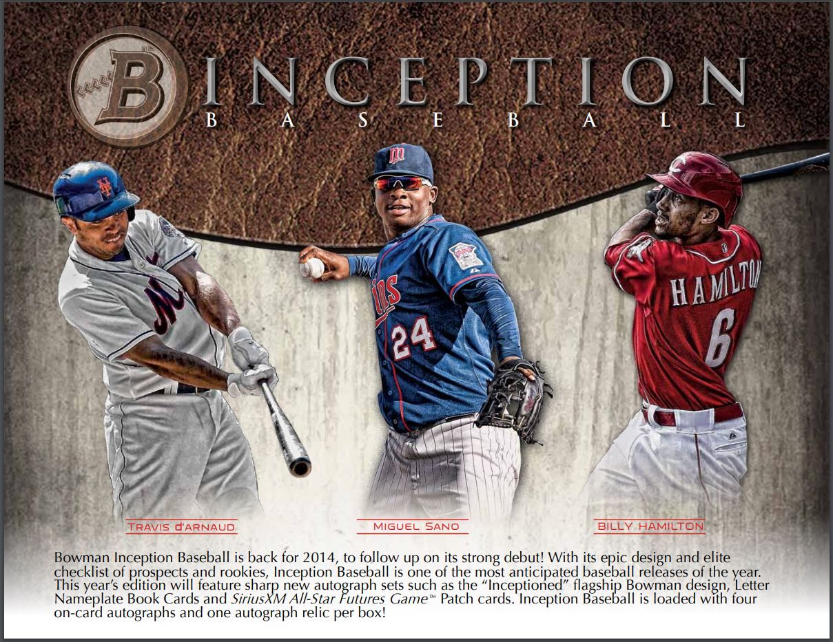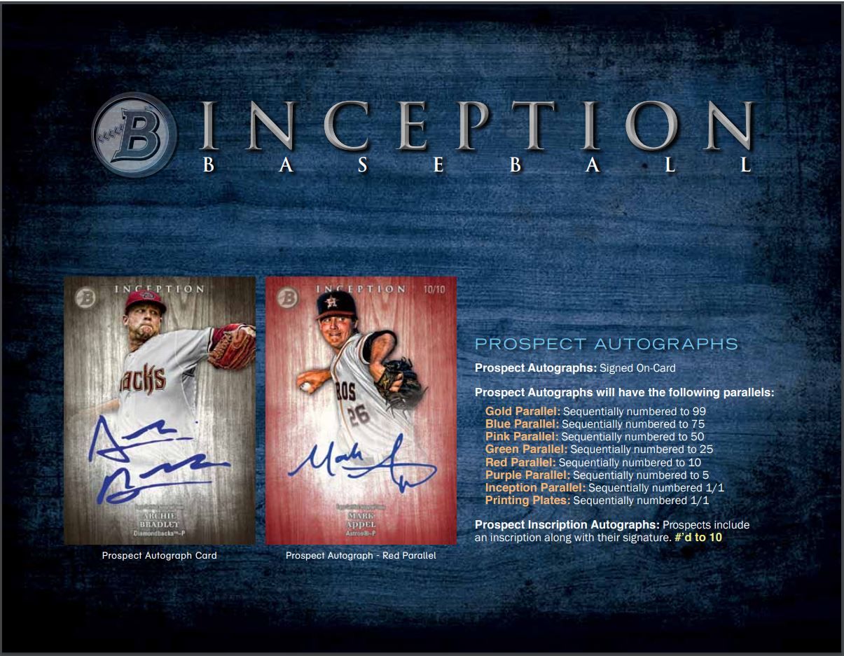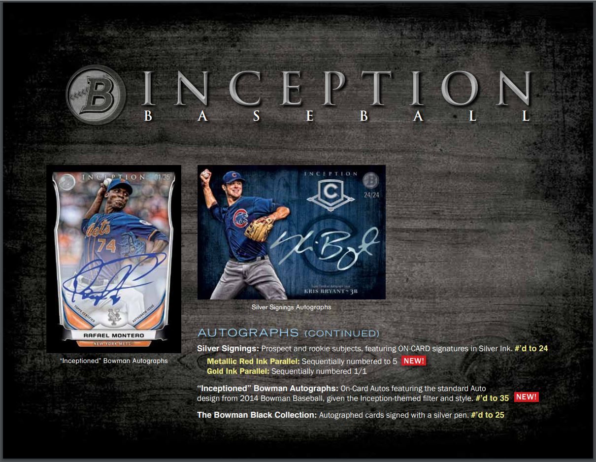 "Inceptioned" Bowman Autographs: On-Card Autos featuring the standard Auto design from 2014 Bowman Baseball, given the Inception-themed filter and style. #'d to 35 NEW!