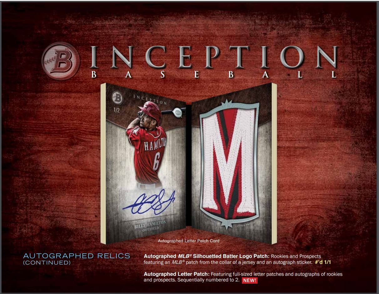 Autographed Letter Patch: Featuring full-sized letter patches and autographs of rookies and prospects. Sequentially numbered to 2.
