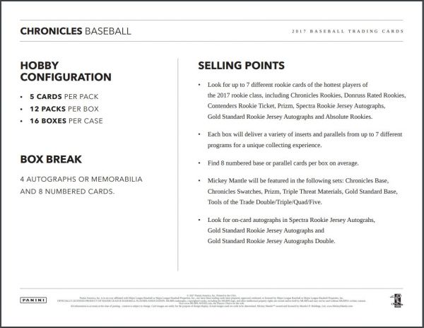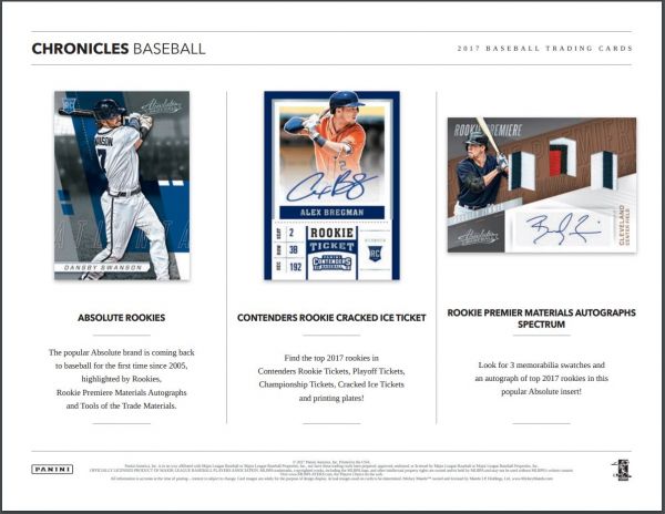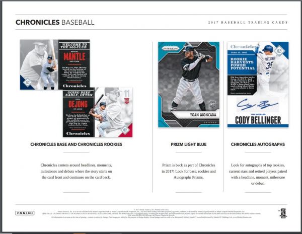 CHRONICLES BASE AND CHRONICLES ROOKIES: Chronicles centers around headlines, moments, milestones and debuts where the story starts on the card front and continues on the card back.