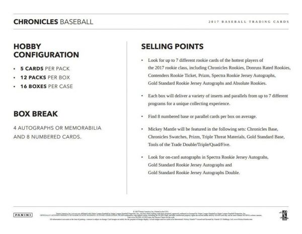 CHRONICLES BASE AND CHRONICLES ROOKIES: Chronicles centers around headlines, moments, milestones and debuts where the story starts on the card front and continues on the card back.