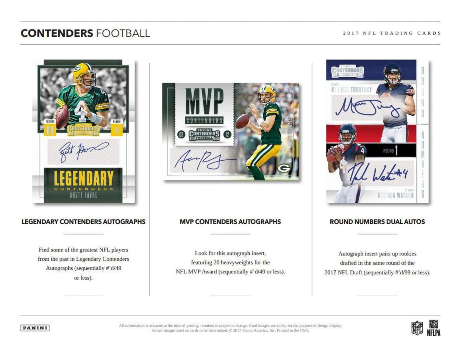 Autographs from the top 2017 Rookies and includes Gold and Platinum versions.