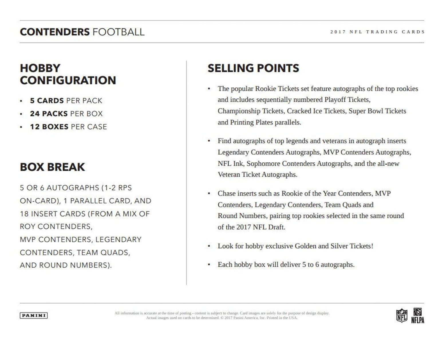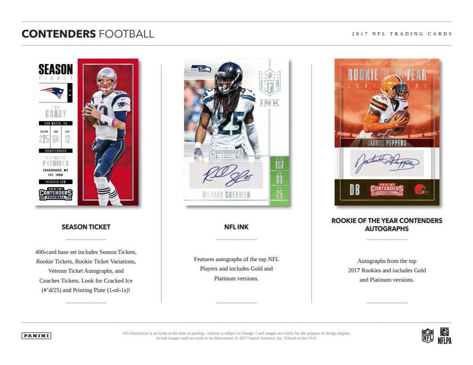 400-card base set includes Season Tickets, Rookie Tickets, Rookie Ticket Variations, Veteran Ticket Autographs, and Coaches Tickets. Look for Cracked Ice (#'d/25) and Printing Plate (1-of-1s)!