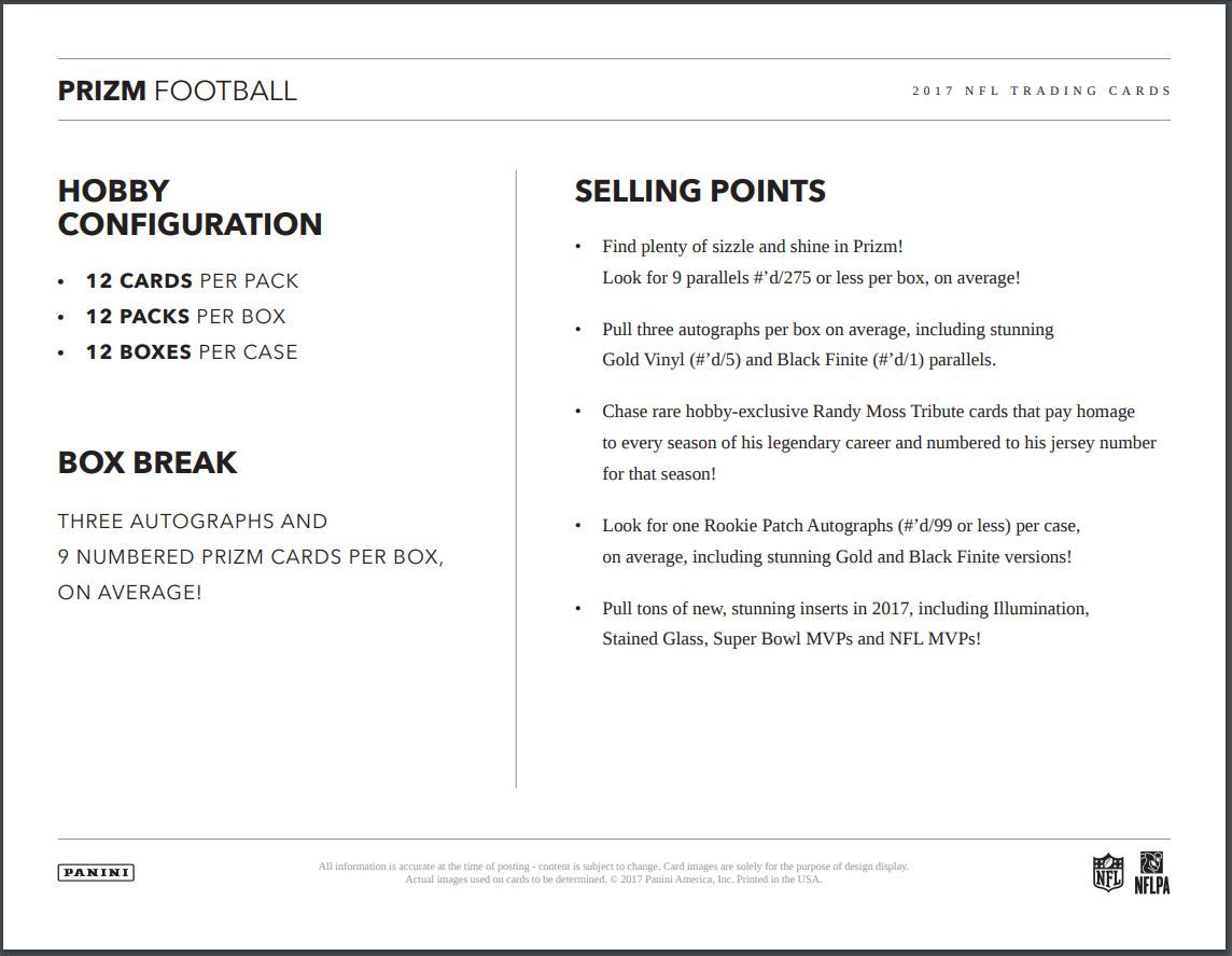 - Find plenty of sizzle and shine in Prizm! Look for 9 parallels #'d/275 or less per box, on average!