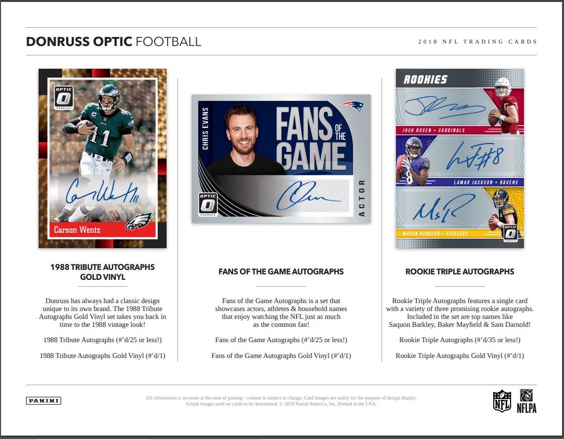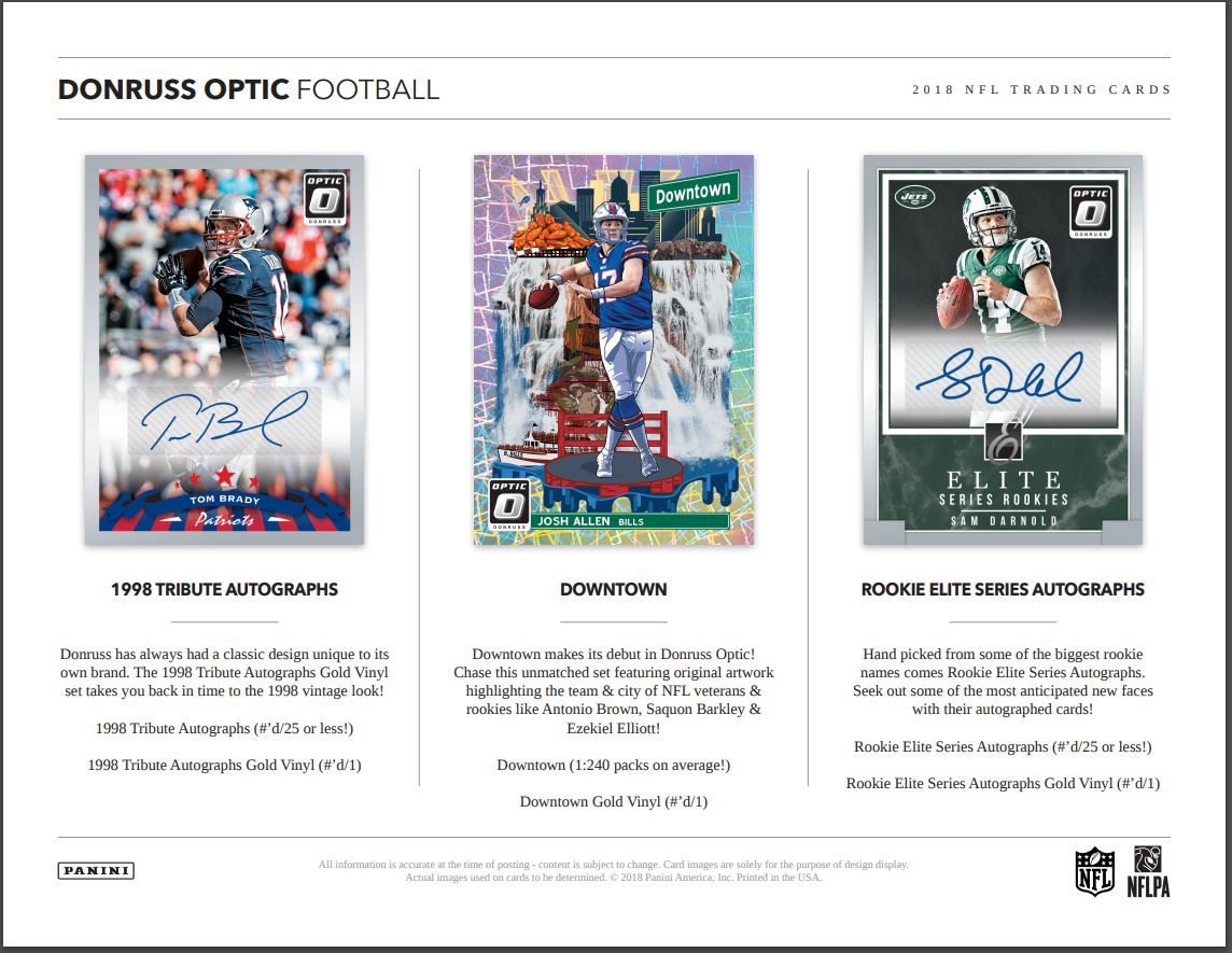- Donruss Optic returns to impact retail for the 2018 NFL season! Find exclusive content in every SKU!