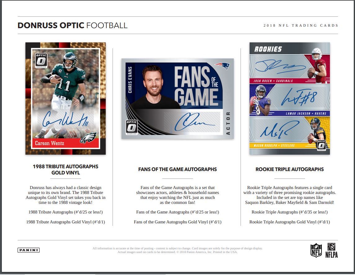 Rookie Triple Autographs features a single card with a variety of three promising rookie autographs. Included in the set are top names like Saquon Barkley, Baker Mayfield & Sam Darnold!