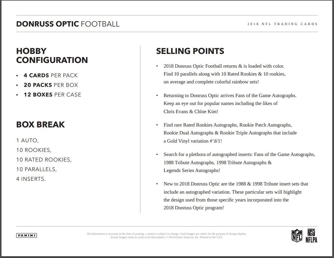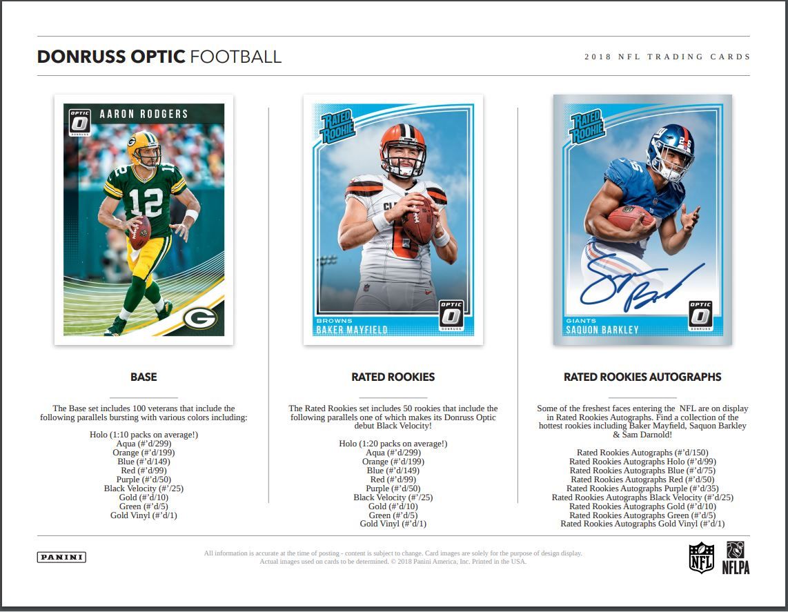 The Rated Rookies set includes 50 rookies that include the following parallels one of which makes its Donruss Optic debut Black Velocity!
