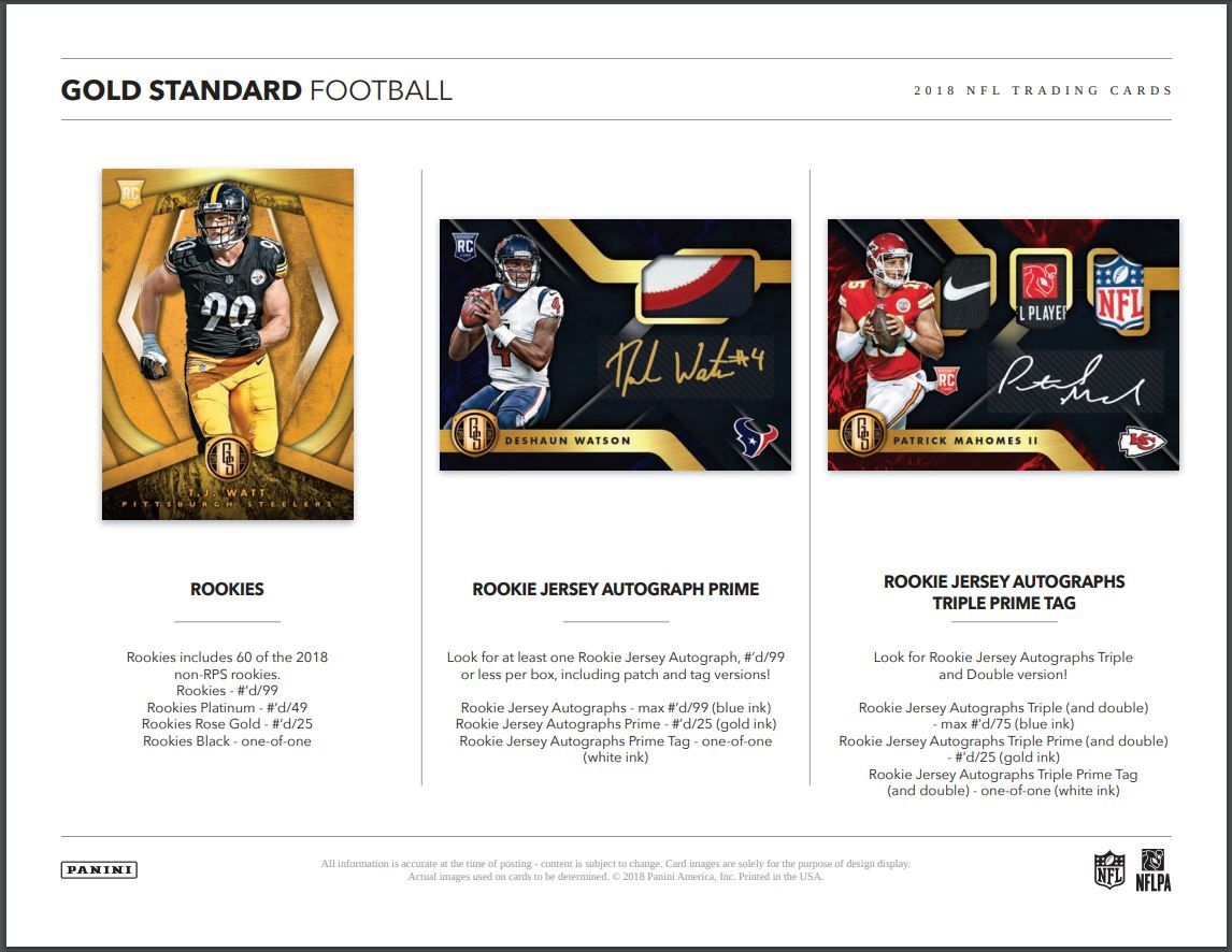 - Look for at least one Rookie Jersey Autograph, #'d/99 or less per box, including prime and tag versions signed in gold and white ink!