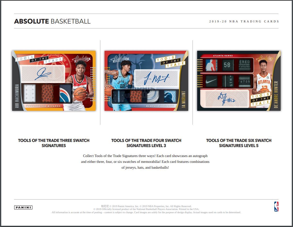 Collect Tools of the Trade Signatures three ways! Each card showcases an autograph and either three, four, or six swatches of memorabilia! Each card features combinations of jerseys, hats, and basketballs!