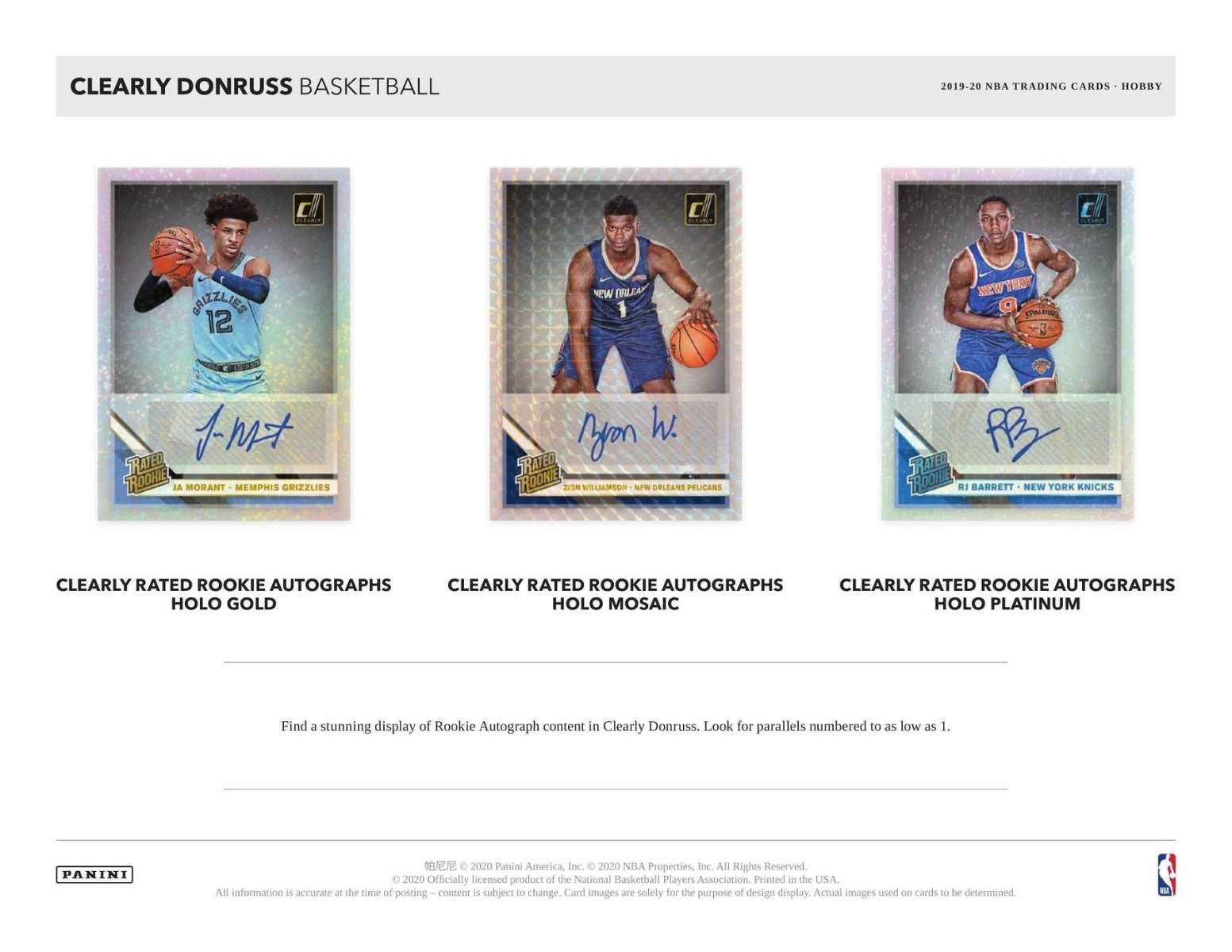 - Look for the Clearly Rated Rookie Autographs, featuring the top rookies from the 2019-20 NBA season, including Zion Williamson, Ja Morant and more. Find parallels numbered to as low as 1.