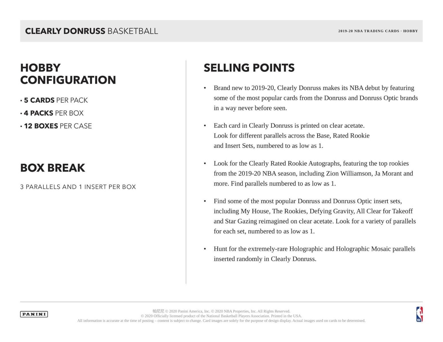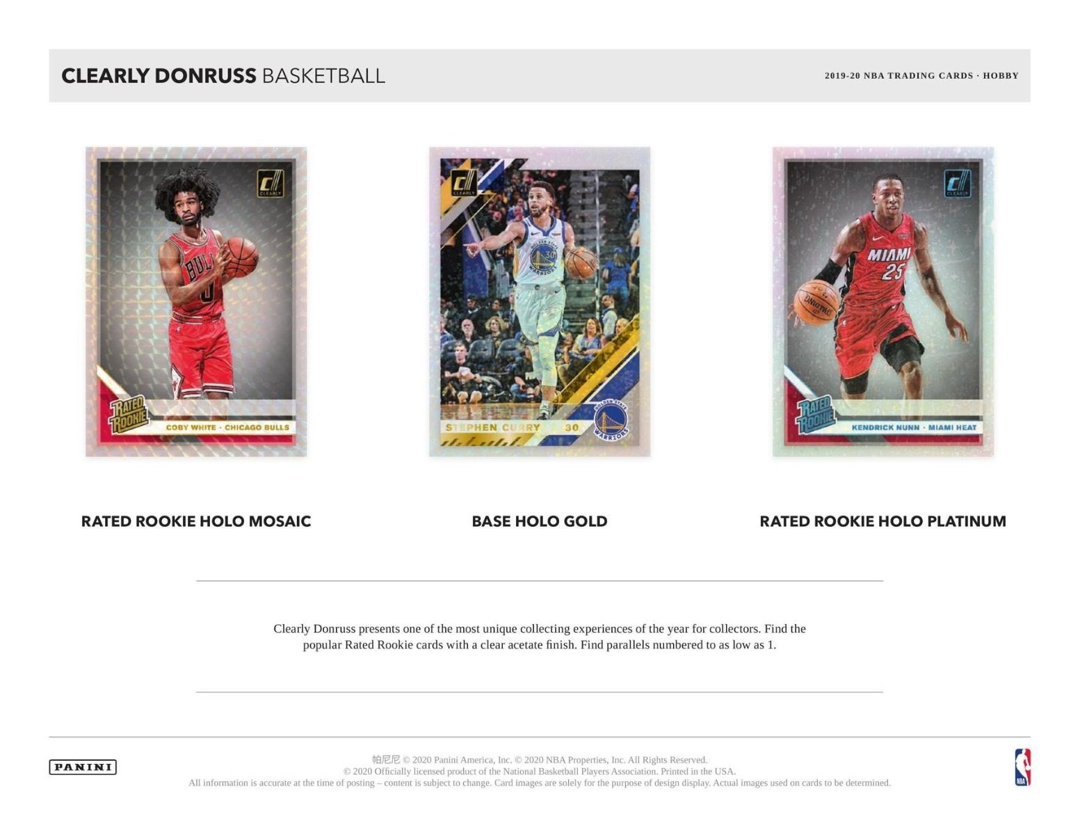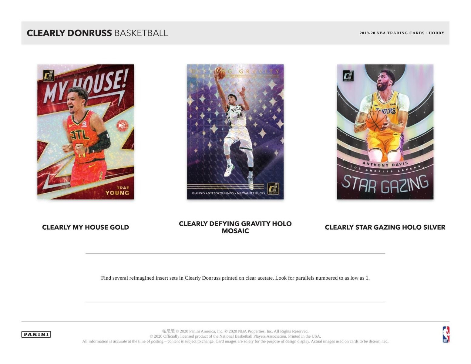 - Brand new to 2019-20, Clearly Donruss makes its NBA debut by featuring some of the most popular cards from the Donruss and Donruss Optic brands in a way never before seen.