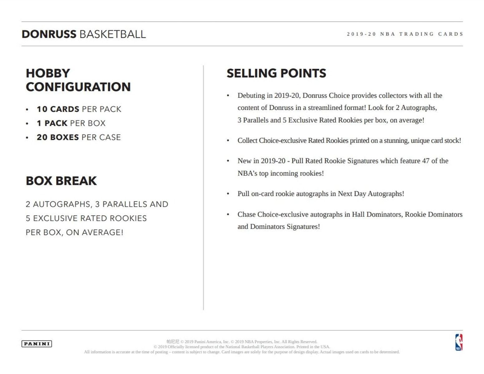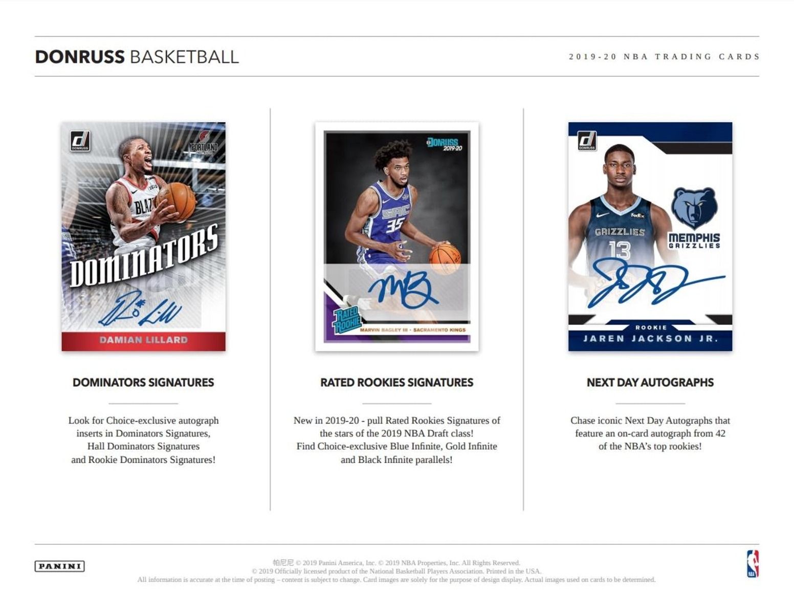 - Debuting in 2019-20, Donruss Choice provides collectors with all the content of Donruss in a streamlined format! Look for 2 Autographs, 3 Parallels and 5 Exclusive Rated Rookies per box, on average!