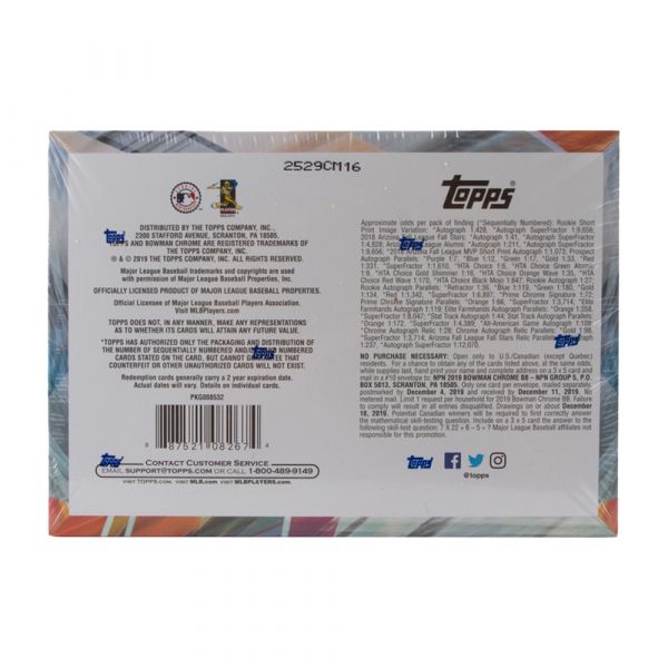 - Featuring Rookie Cards of Pete Alonso, Vladimir Guerrero Jr., Eloy Jimenez, Fernando Tatis Jr., Kyle Tucker, Rowdy Tellez, Keston Hiura, Carter Kieboom, Michael Kopech, Austin Riley, Danny Jansen, Yusei Kikuchi, Griffin Canning, Ramon Laureano, and Nick Senzel.