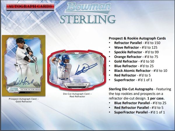 Sterling Die-Cut Autographs: Featuring the top rookies and prospects on a refractor die-cut design. 1 per case.