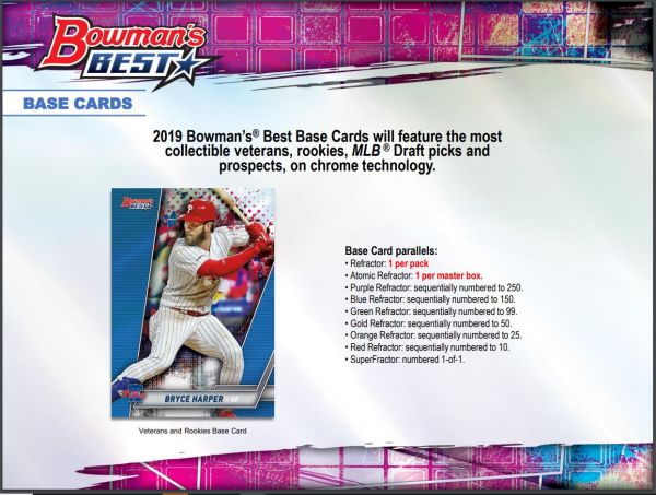 2019 Bowman’s Best Base Cards will feature the most collectible veterans, rookies, MLB Draft picks and prospects, on chrome technology.