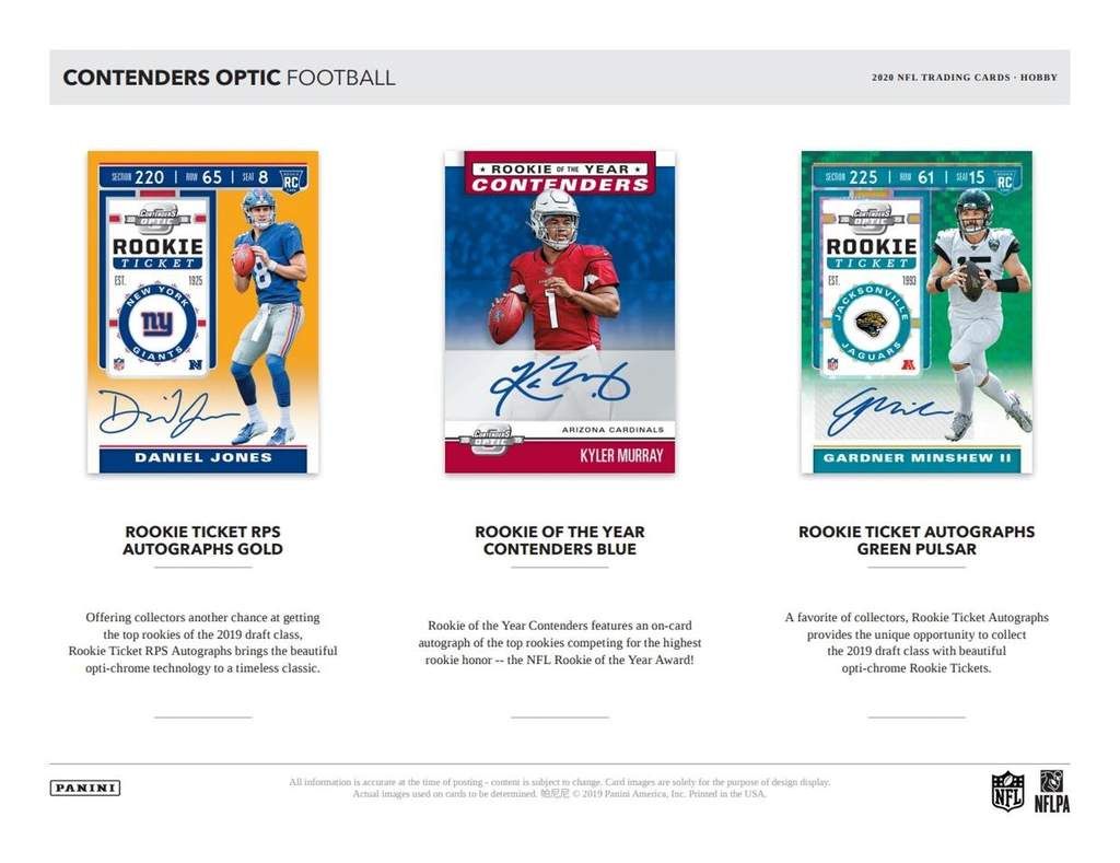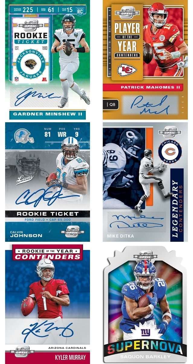 ROOKIE OF THE YEAR CONTENDERS: Rookie of the Year Contenders features an on-card autograph of the top rookies competing for the highest rookie honor -- the NFL Rookie of the Year Award!