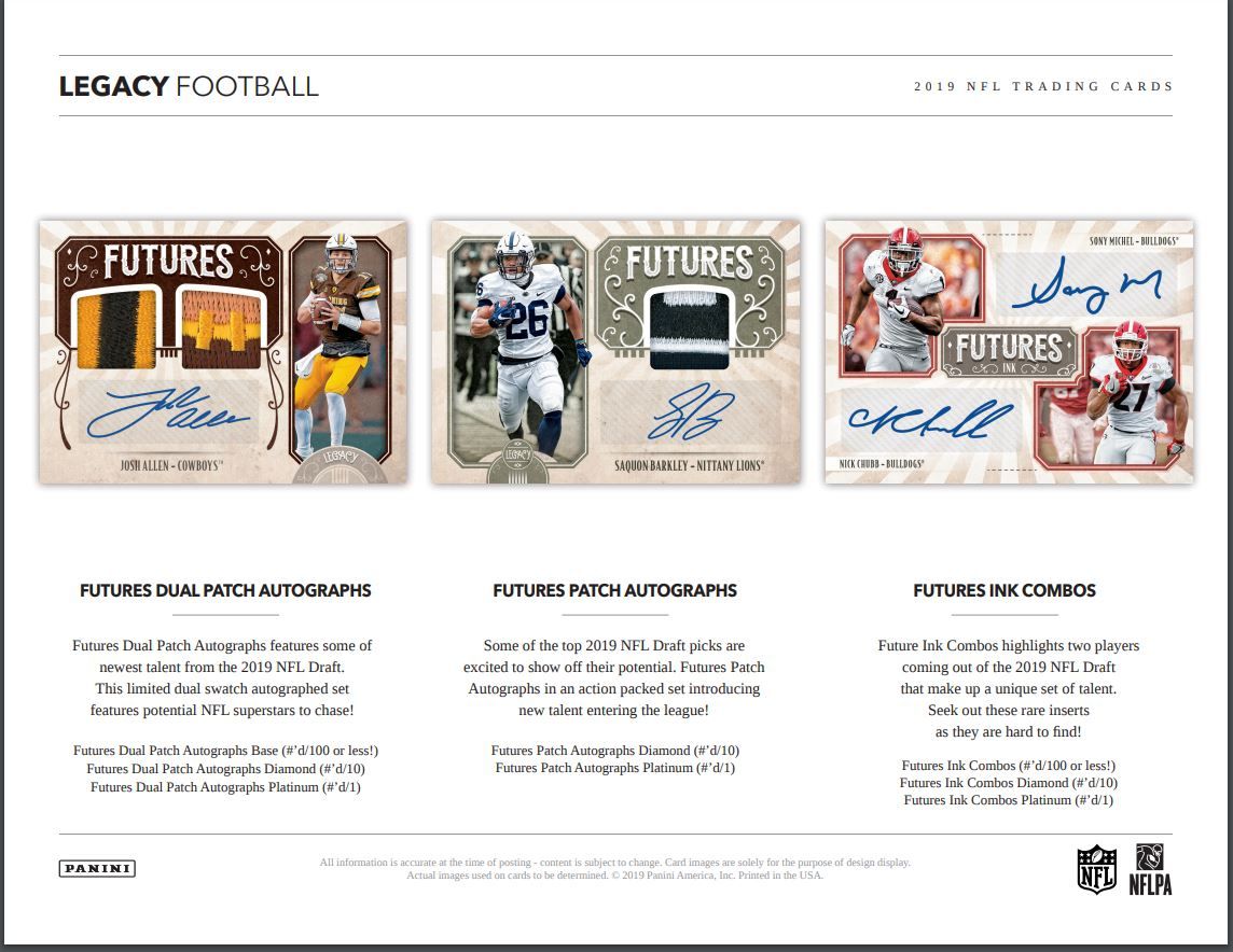 FUTURES PATCH AUTOGRAPHS: Some of the top 2019 NFL Draft picks are excited to show off their potential. Futures Patch Autographs in an action packed set introducing new talent entering the league!