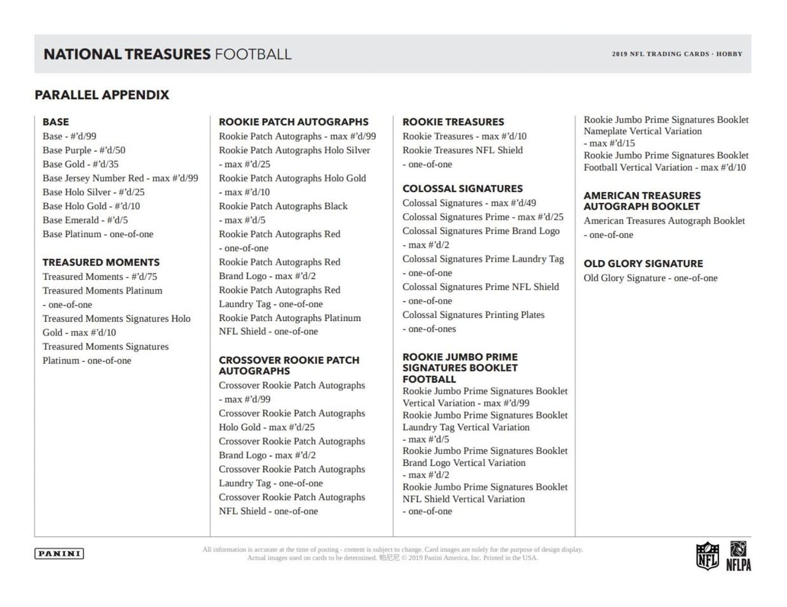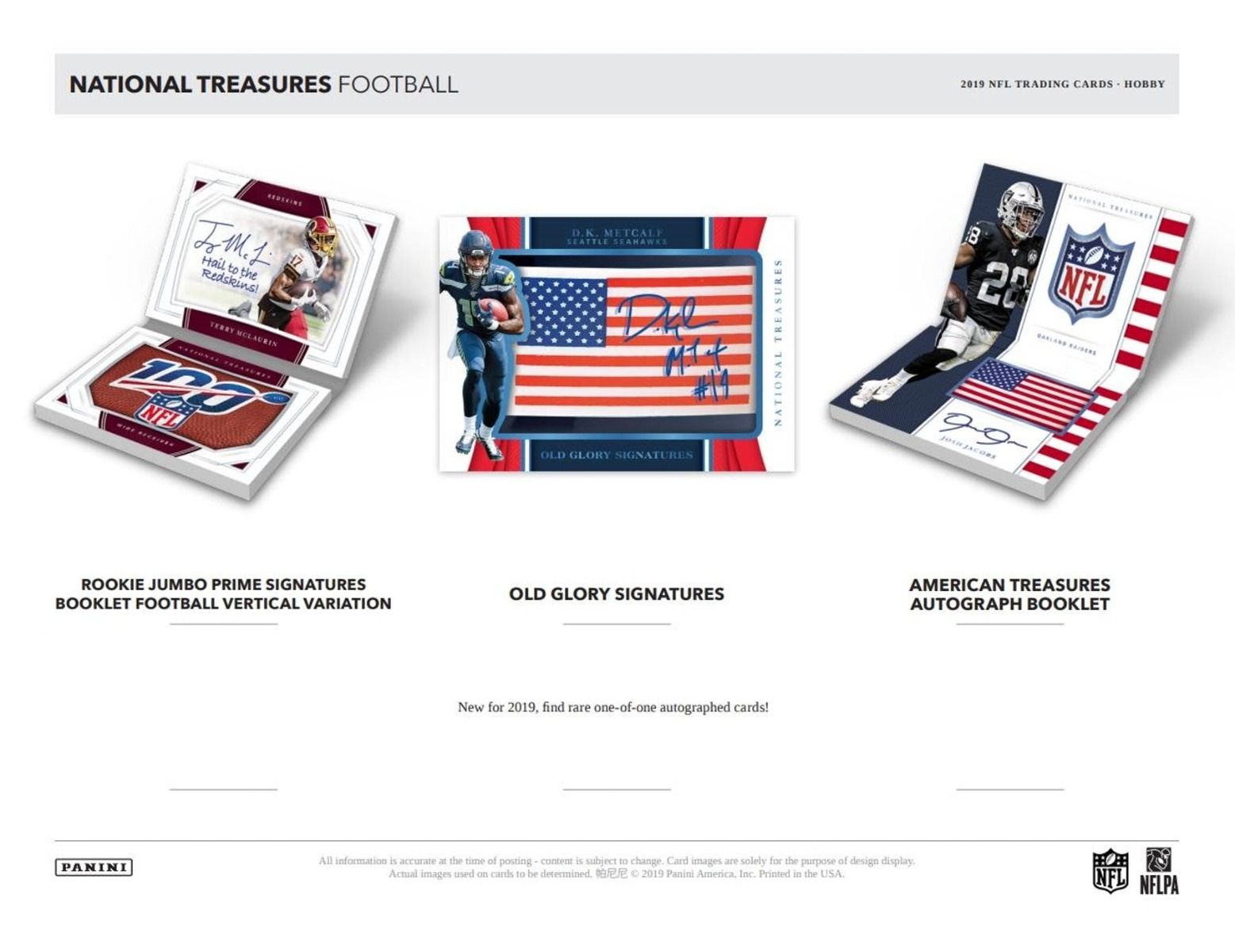 - One of the most-anticipated releases of the year, National Treasures football is back and loaded with on-card autographs, oversized patches and all the best current and retired NFL players.