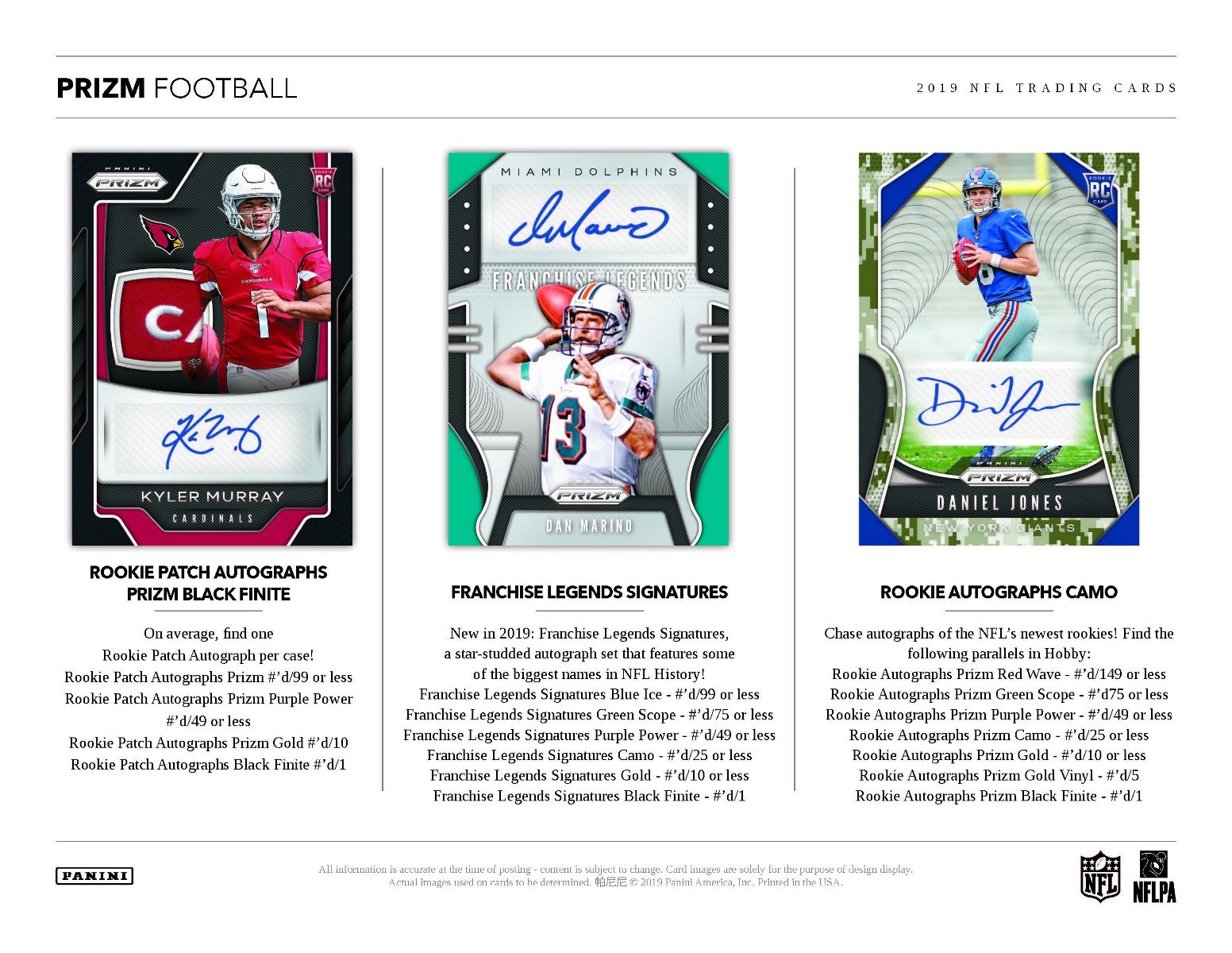 - New for 2019: On average, every case of Prizm delivers one SP Insert! Be on the hunt for five unique inserts, including Color Blast!
