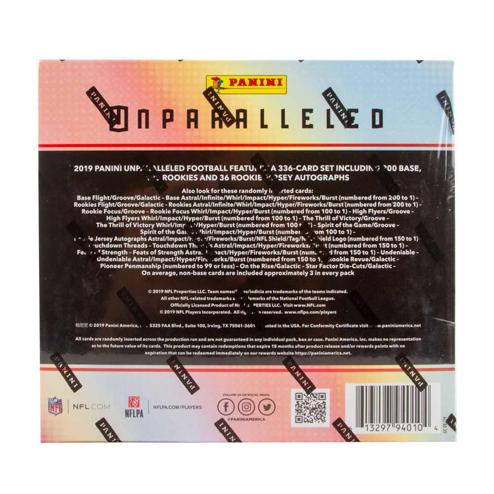 BASE: Unparalleled features a total base set of 300 cards, comprising 200 veterans and 100 rookies. Similar to the 2018 edition, the base set will feature the first officially licensed cards of more than 60 veterans! All base cards feature the following parallels: