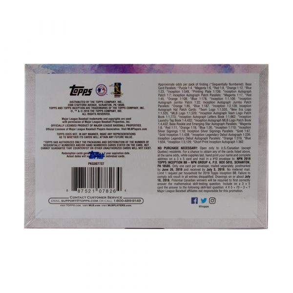 Inception Autograph Jumbo Patch Cards: Showcasing 2019 Rookies and the hottest young stars of the game. Each card will include the player’s autograph and a jumbo jersey patch piece.Â