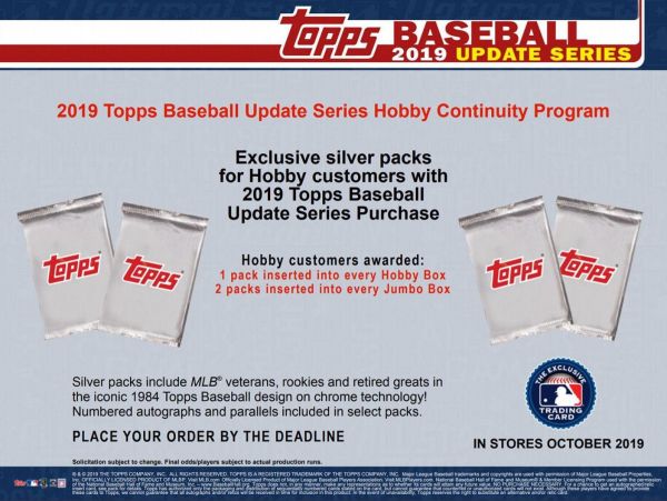 - Exclusive silver packs for Hobby customers with 2019 Topps Baseball Update Series Purchase!