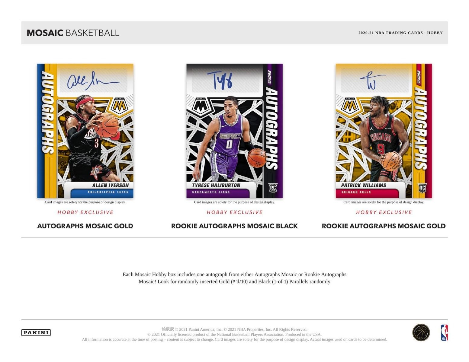 - Find autographs of the top NBA stars and rookies in Autographs Mosaic & Rookie Autographs Mosaic! Look for Gold (#'d/10) and Black (1-of-1) Parallels that are randomly inserted!