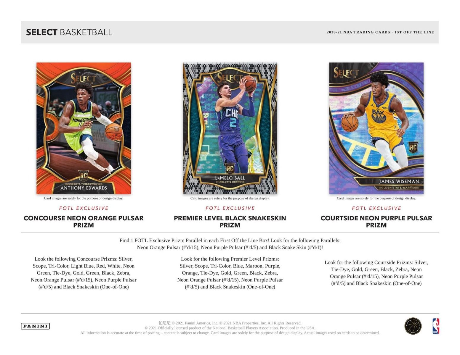 - 1st Off the Line Select returns with 3 Autographs or Memorabilia cards per box (including 1 FOTL Exclusive Parallel Autograph), 10 Base Premier Level cards, 2 Base Courtside cards, and 12 Prizms (including 1 FOTL Exclusive Parallel) per box, on average!!