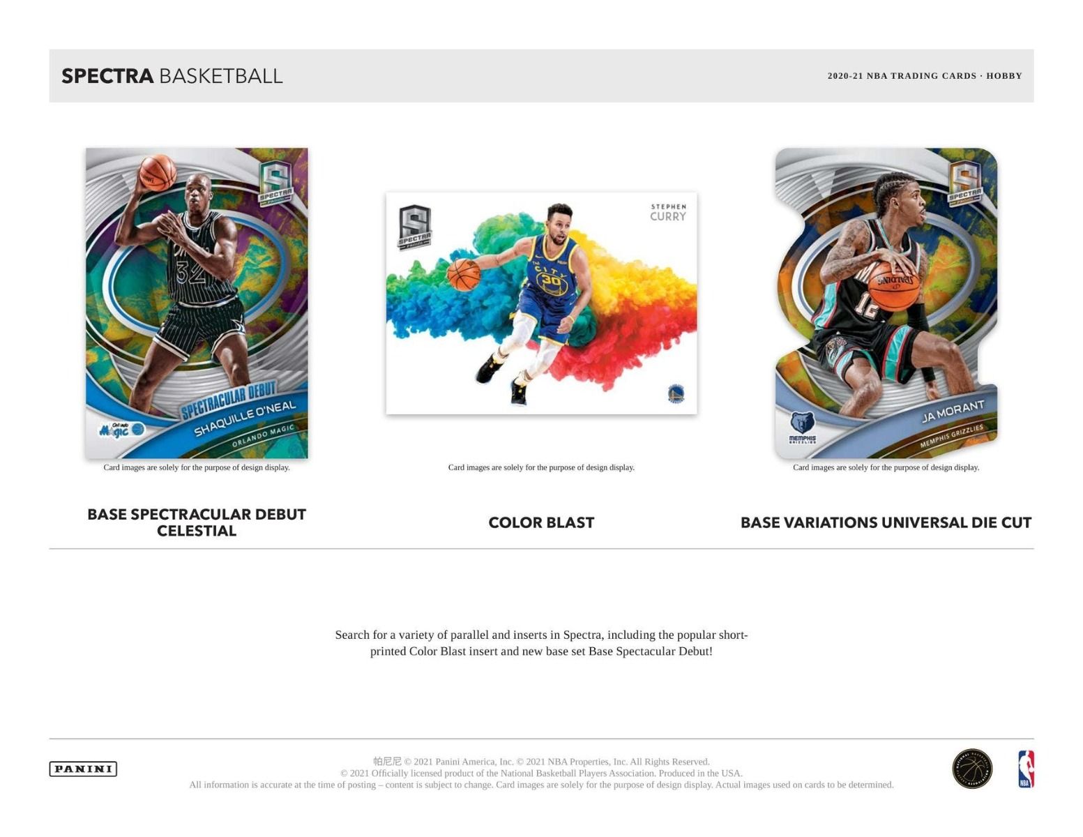 BASE SPECTRACULAR DEBUT CELESTIAL/COLOR BLAST/BASE VARIATIONS UNIVERSAL DIE CUT:Â Search for a variety of parallel and inserts in Spectra, including the popular shortprinted Color Blast insert and new base set Base Spectacular Debut!