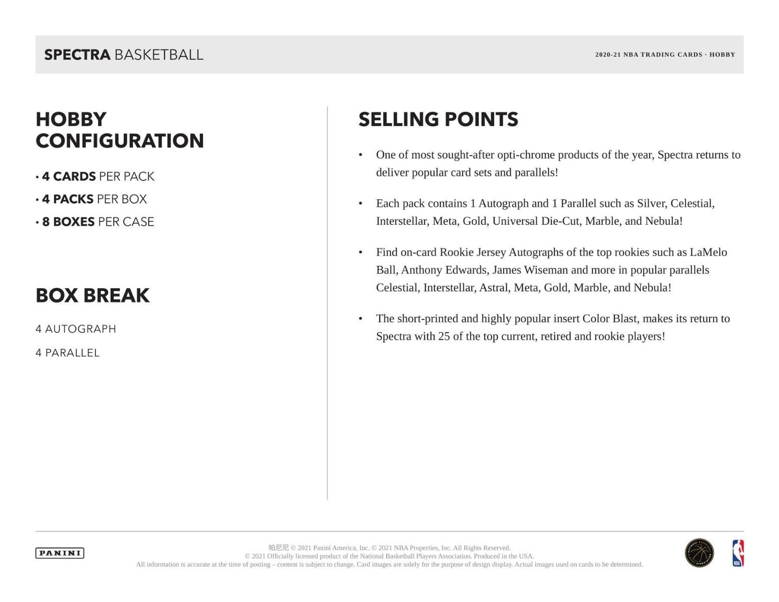 - One of most sought-after opti-chrome products of the year, Spectra returns to deliver popular card sets and parallels!