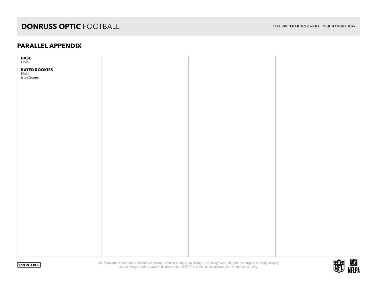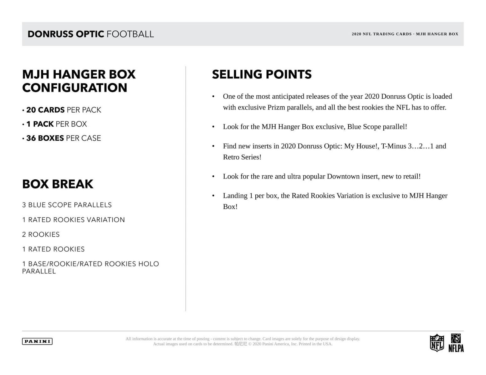 - One of the most anticipated releases of the year 2020 Donruss Optic is loaded with on-card autographs, parallels, and all the best rookies the NFL has to offer.