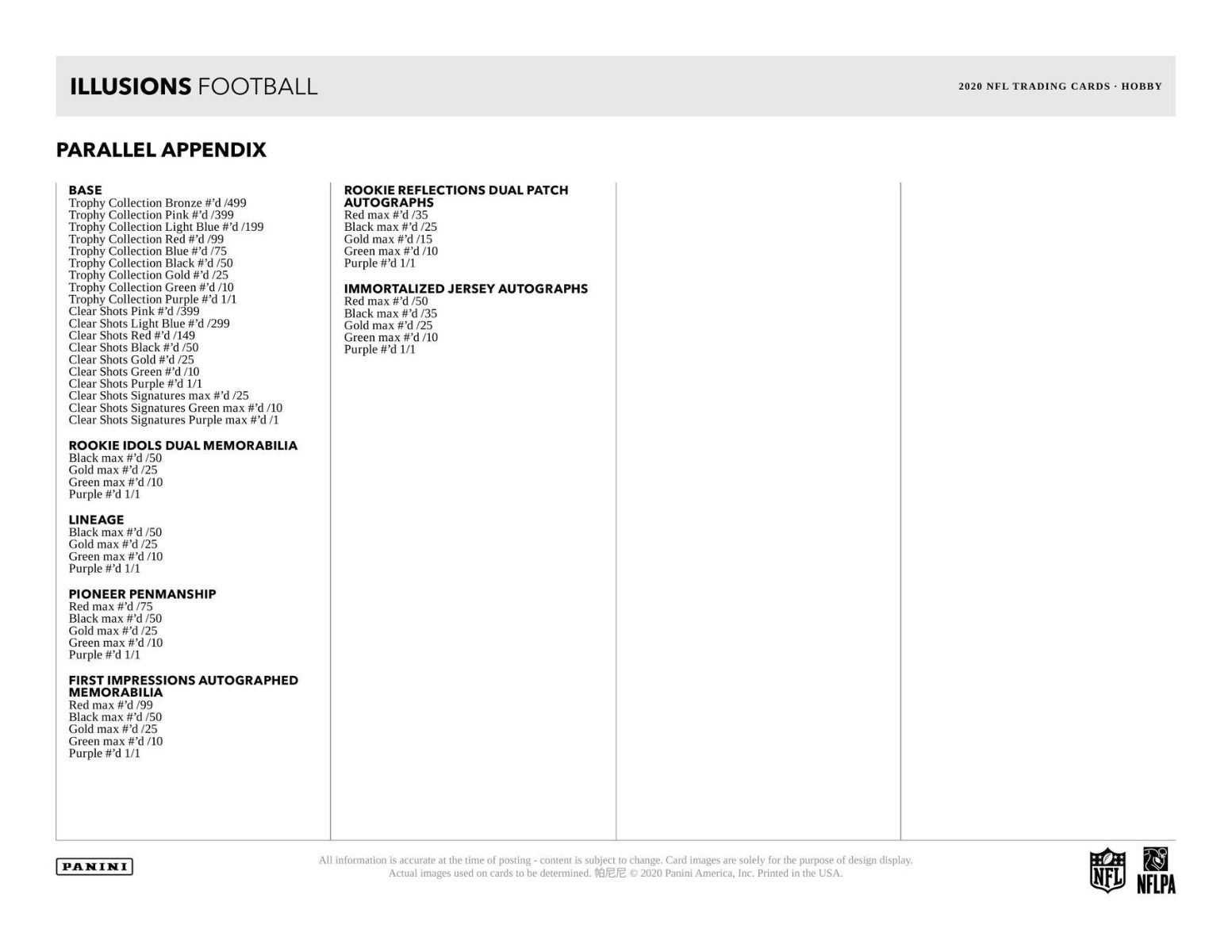 BASE:Â Chase a 100-card base set, which includes all the top rookies, current stars and retired legends the NFL has to all!
