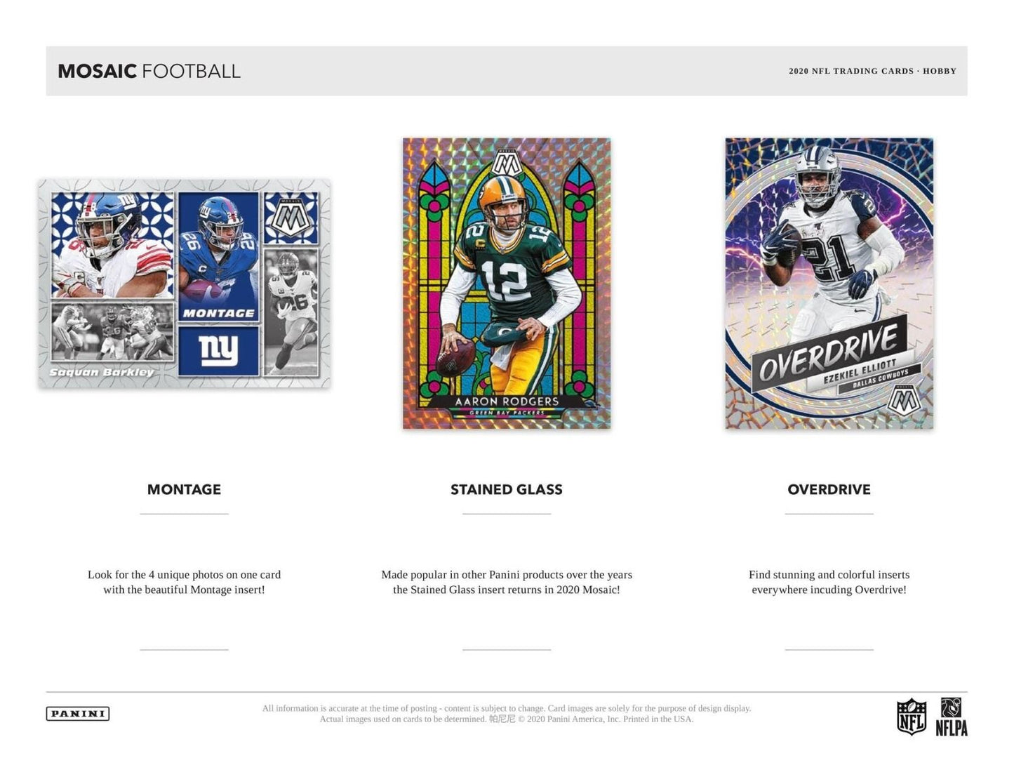 - Mosaic Football makes its debut in 2020 and is loaded with parallels, inserts and autographs of all the best rookies, current stars and retired legends the NFL has to offer.