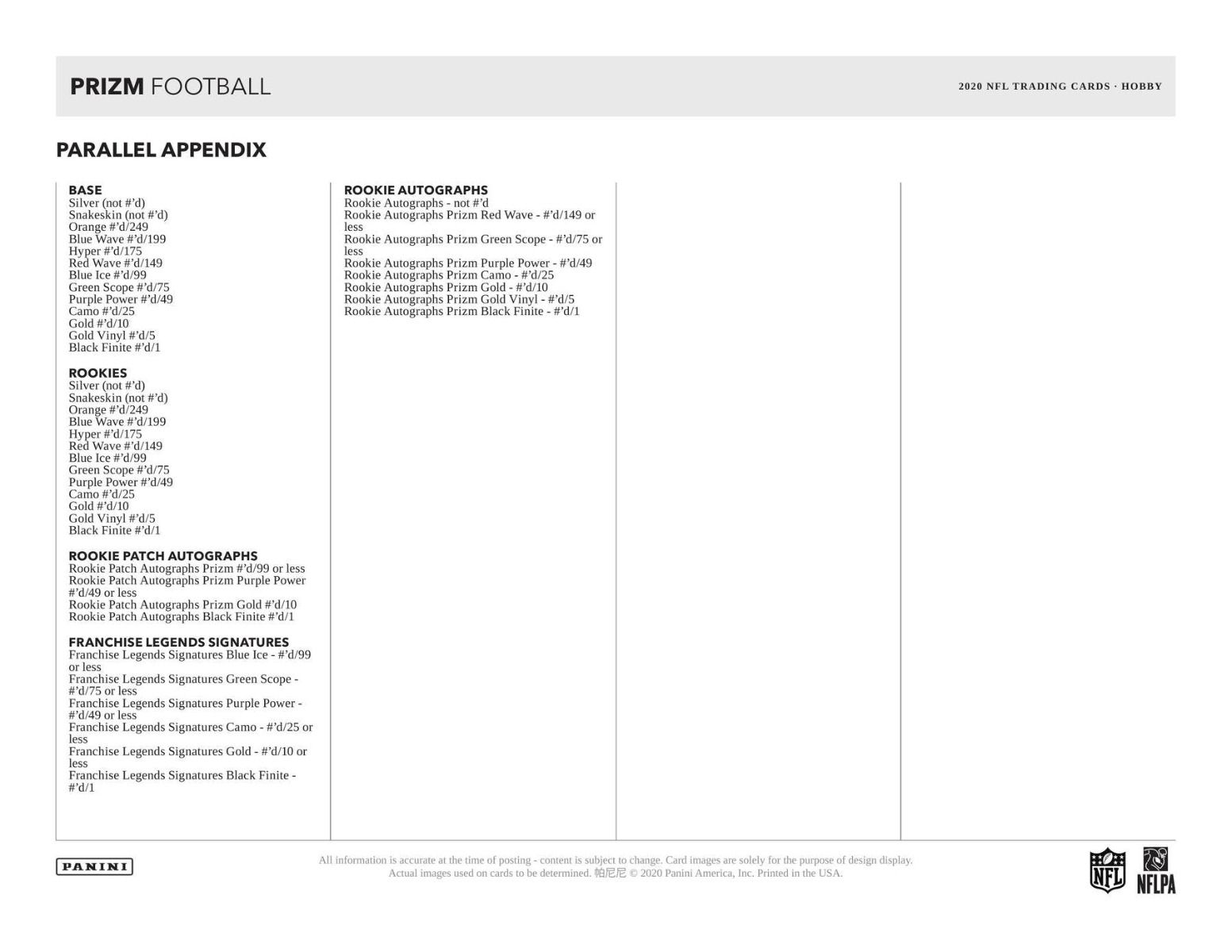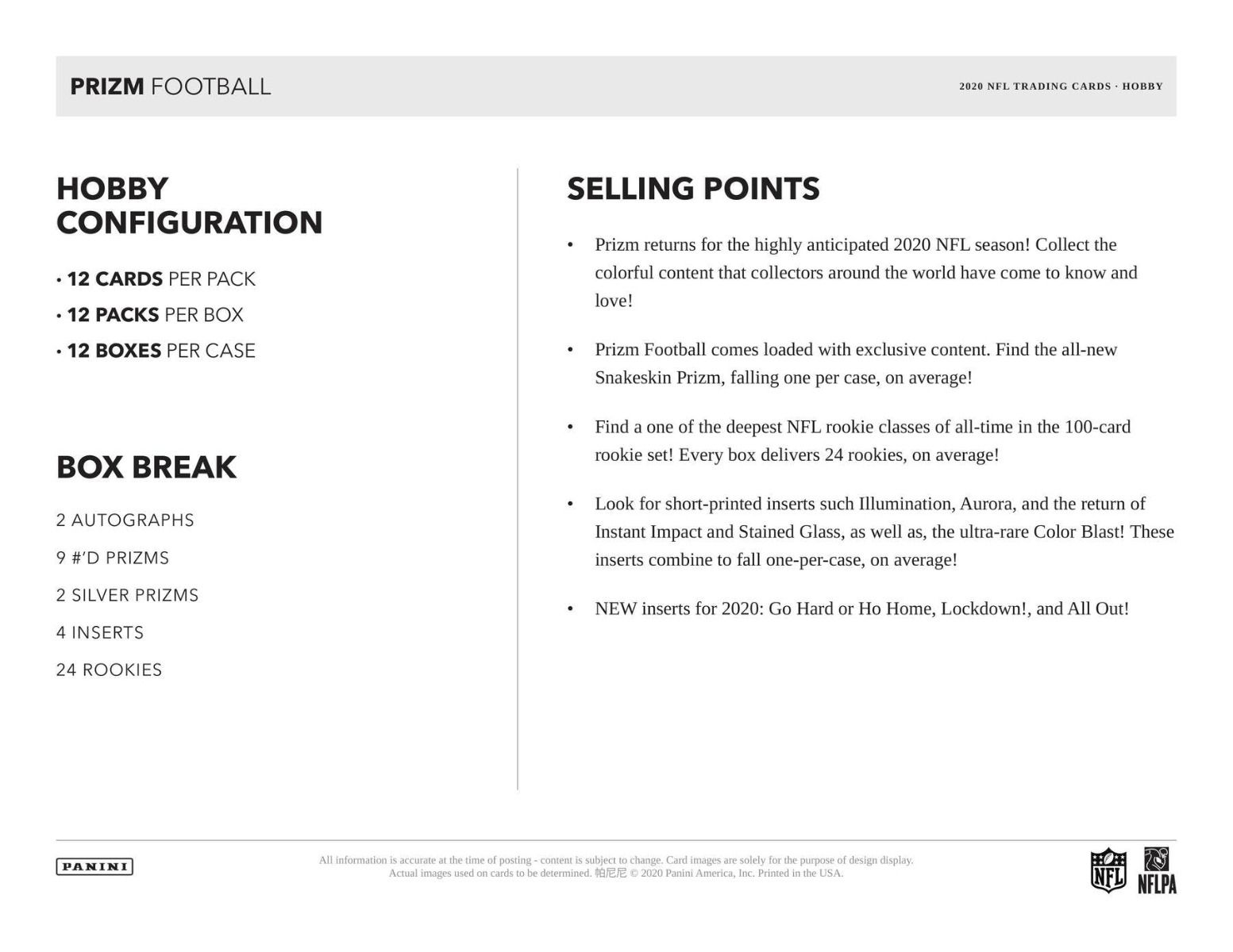 - Prizm returns for the highly anticipated 2020 NFL season! Collect the colorful content that collectors around the world have come to know and love!