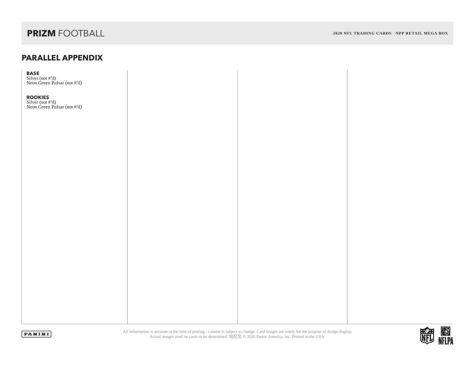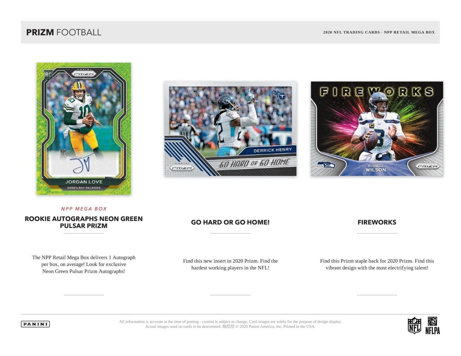 - Prizm returns for the highly anticipated 2020 NFL season! Collect the colorful content that collectors around the world have come to know and love!