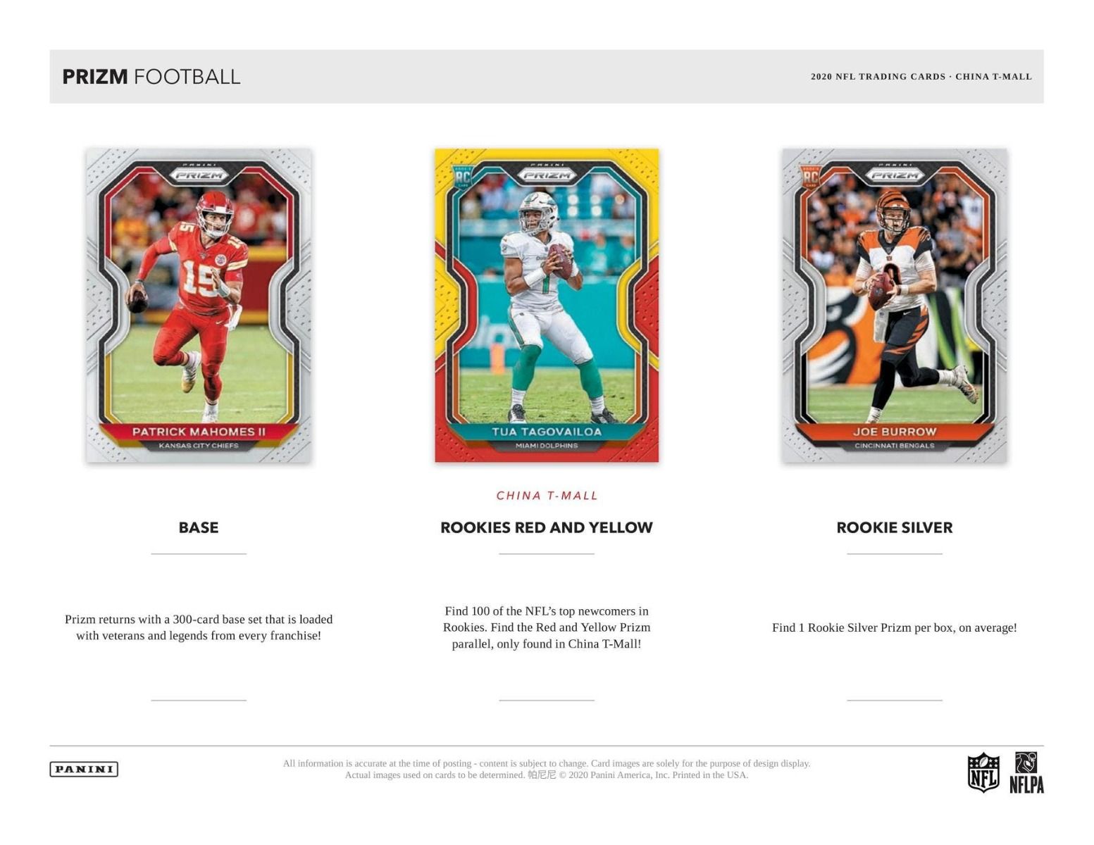 ROOKIES RED AND YELLOW:Â Find 100 of the NFL's top newcomers in Rookies. Find the Red and Yellow Prizm parallel, only found in China T-Mall!