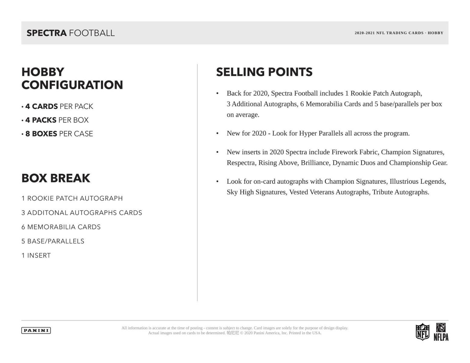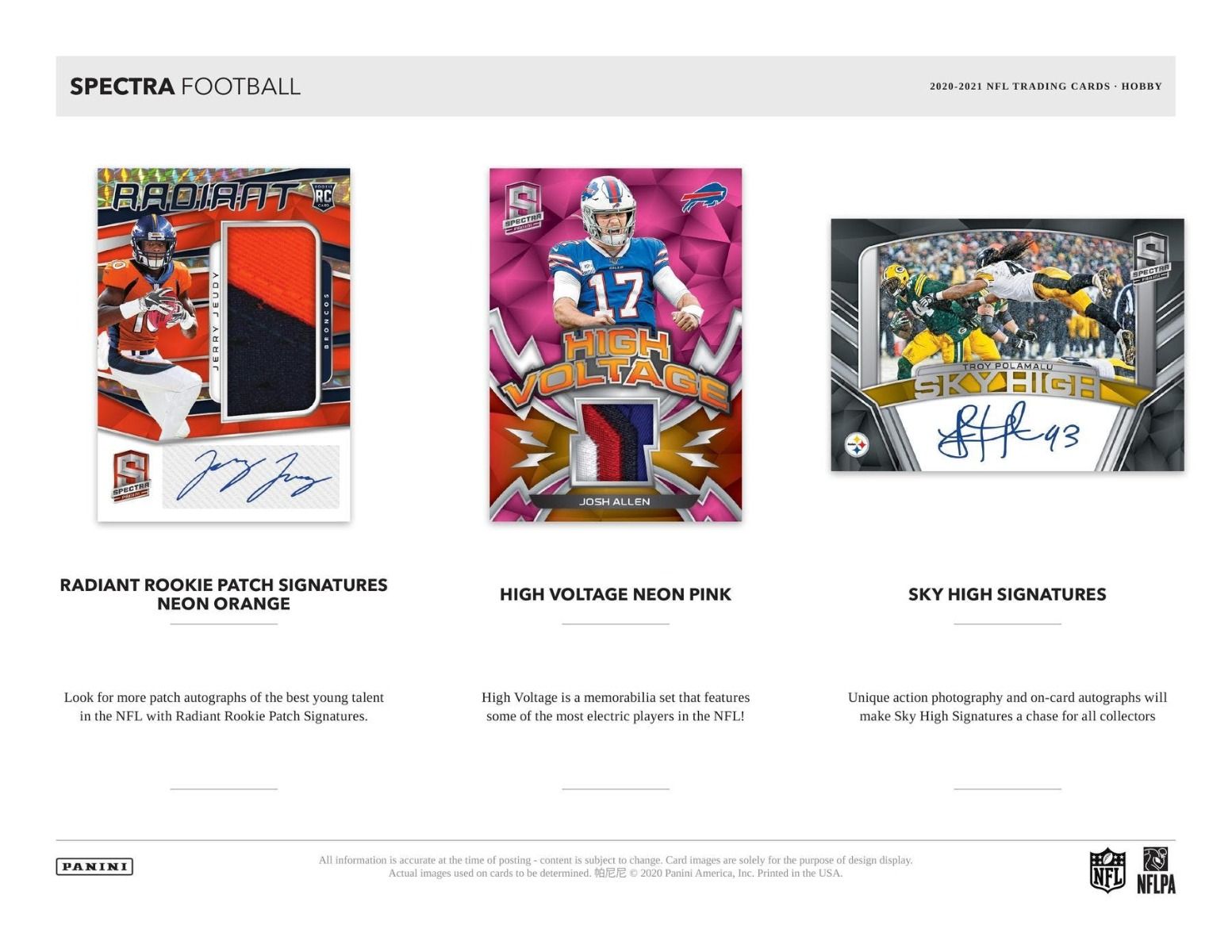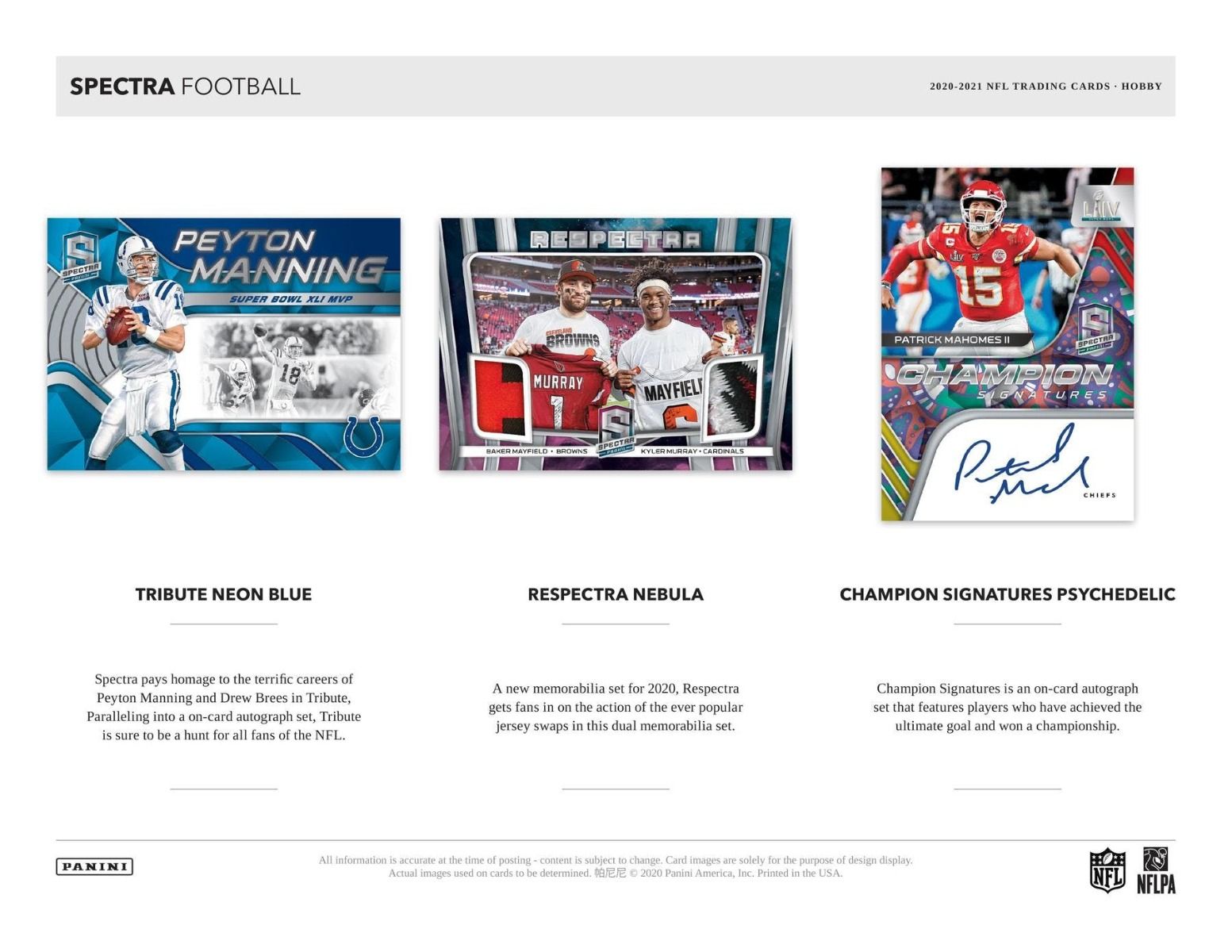- New inserts in 2020 Spectra include Firework Fabric, Champion Signatures, Respectra, Rising Above, Brilliance, Dynamic Duos and Championship Gear.