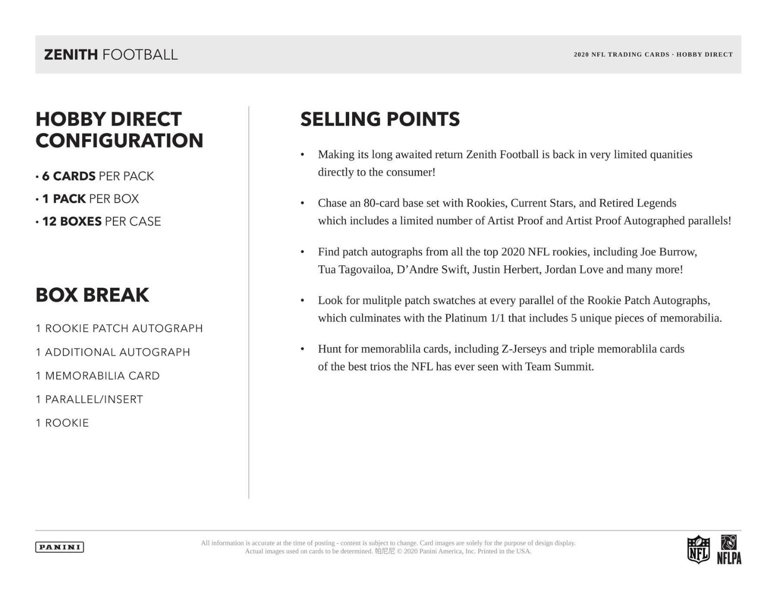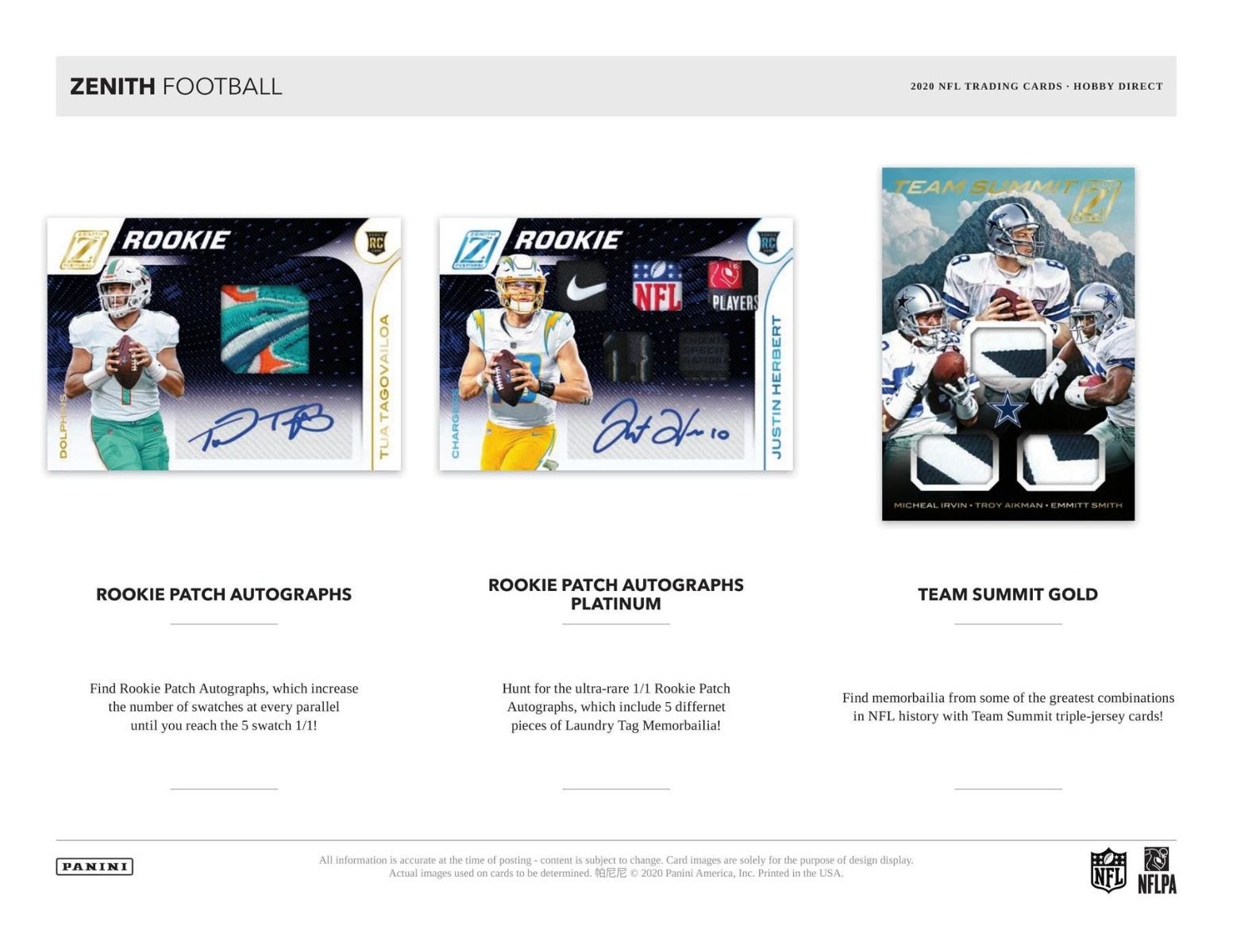 - Featuring Rookie Cards of Joe Burrow, Tua Tagovailoa, Justin Herbert, Clyde Edwards-Helaire, Jerry Jeudy, CeeDee Lamb, Jalen Hurts, Clyde Edwards-Helaire, Jacob Eason, Henry Ruggs III, Justin Jefferson, Laviska Shenault Jr., Jonathan Taylor, J.K. Dobbins, Zack Moss, Brandon Aiyuk, Chase Young, Isaiah Simmons, Cole Kmet, Jordan Love, and Chase Claypool.