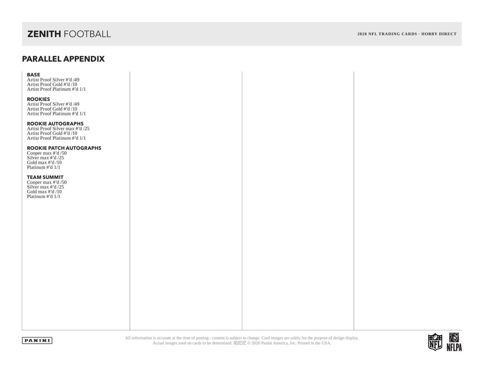 ROOKIES:Â Look for all the best rookies the NFL has to offer and chase their Artist Proof parallels!