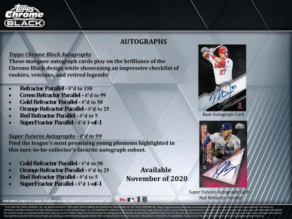 These marquee autograph cards play on the brilliance of the Chrome Black design while showcasing an impressive checklist of rookies, veterans, and retired legends!