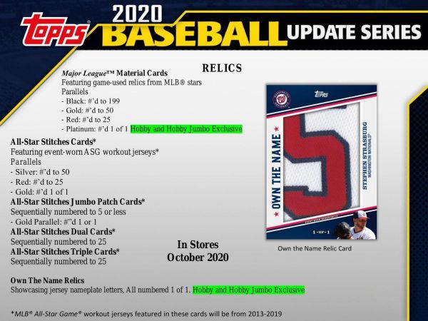 - Featuring modern stars, player transactions, top prospects, and historical MLB All-Star Game and Postseason content, your collection isn't complete without the release of Topps Baseball Update Series!