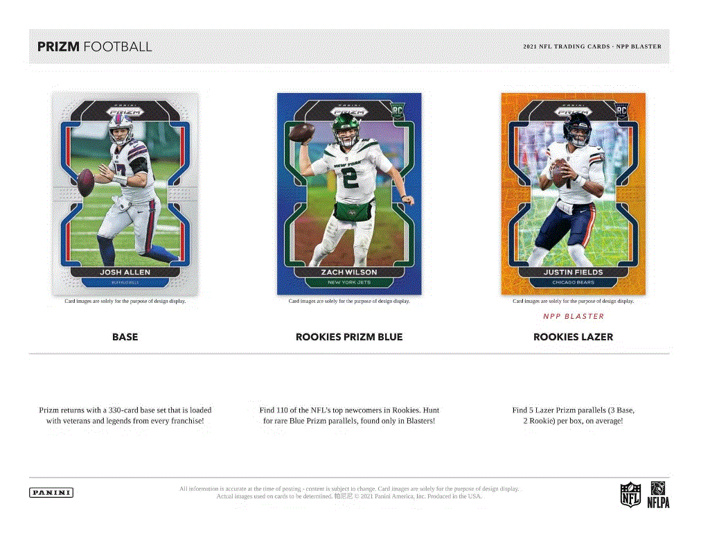- One of the biggest names in sports cards, 2021 Prizm Football delivers one of the biggest base sets, colorful new parallels, and brand-new inserts. Collectors of all types and ages will find something to love in 2021 Prizm Football.