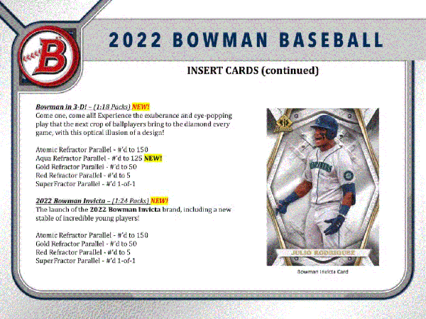 - The launch of the 2022 Bowman Invicta brand, including a new stable of incredible young players!