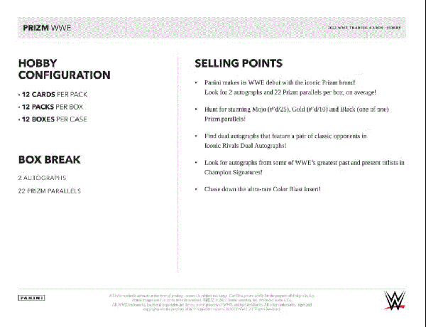 - Panini's WWE debut features two autographs and 22 Prizm parallels per box, on average!
