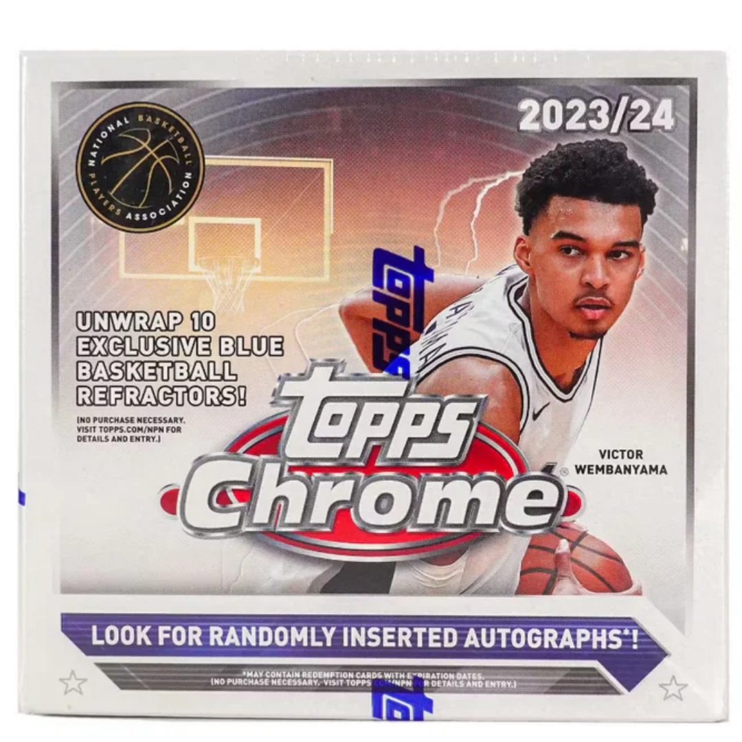 Returning to the Hobby in 2024, Topps Chrome Basketball is back! Find and collect the 200 card Base set featuring some of the top Rookies, Vets and Retired players in Basketball!