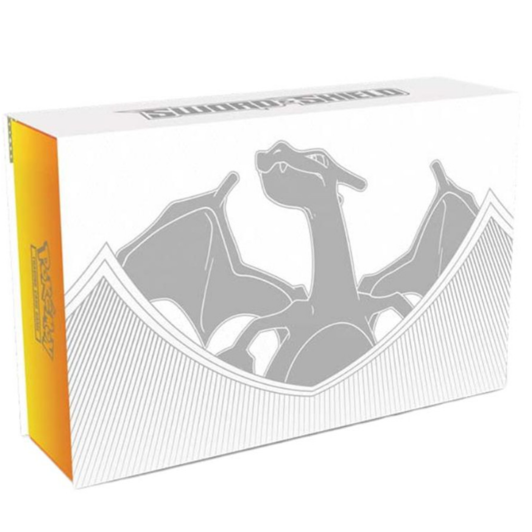 Card Text: Celebrate the Sword & Shield Series and the era of Pokémon V, Pokémon VMAX, and Pokémon VSTAR with a hotshot who knows how to put all that power to good use! Charizard turns up the heat as a trio of promo cards with an etched foil treatment, and its Gigantamax form shows off blazing style on a playmat, metal coin, and set of card sleeves. Metal dice and condition markers round out this ultimate set of gameplay accessories. And as you open the huge stack of booster packs inside this box, take a journey through the Sword & Shield Series with an original booklet full of images and stats!